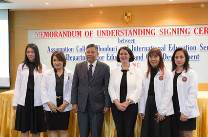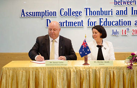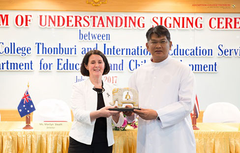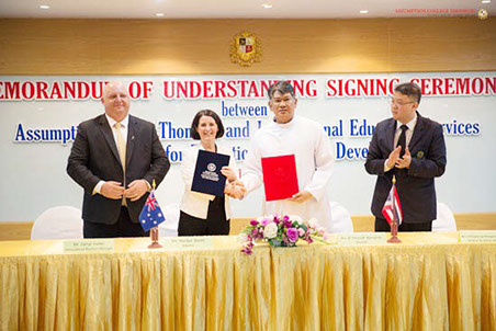 On July 14th, 2017, Assumption College Thonburi invited several guests from Australia to sign a memorandum of understanding. The delegation from Australia included guests from the Australian embassy, International Education Services, the Department for Education and Child Development of South Australia, and AusConnect. The event opened with a performance by ACT students demonstrating Thai culture through the traditional Lotus Dance and a welcoming speech by Brother Director, Dr.Verayuth Boonpram. Throughout the ceremony our distinguished guests gave some wonderful speeches and overviews detailing all of the advantages of our developing partnership. Through a morning of warm welcomes, we concluded by signing the memorandum that set our partnership into motion. We at ACT look forward to many years of successful friendship between our organizations to the betterment of our students.
