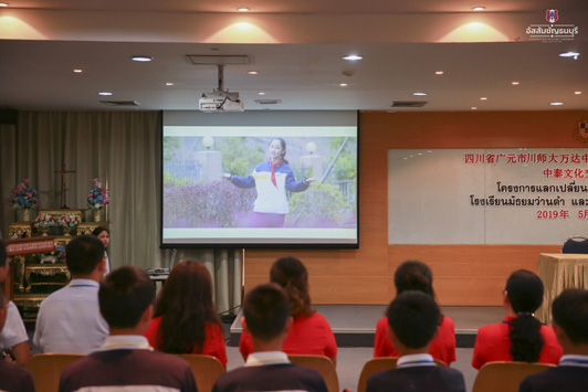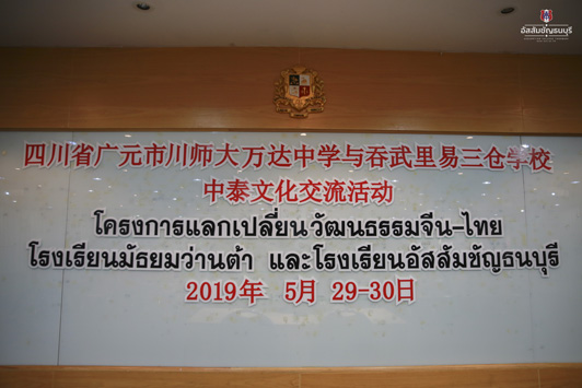 งานการเรียนการสอนภาษาต่างประเทศ ฝ่ายวิชาการ ต้อนรับนักเรียน และบุคลากรโรงเรียนว่านต๋า สาธารณรัฐประชาชนจีน ที่เดินทางมาศึกษาดูงาน และแลกเปลี่ยนวัฒนธรรมไทย-จีน ในโครงการสานสัมพันธ์มิตรภาพแลกเปลี่ยนวัฒนธรรมไทย-จีน โดยสมาคมเสฉวนแห่งประเทศไทย ร่วมกับ โรงเรียนมัธยมว่านต๋า ระหว่างวันที่ 29-30 พฤษภาคม 2562