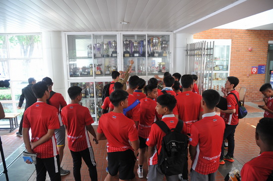 วันพุธที่ 30 ตุลาคม 2562 เจแปนฟาวน์เดชั่น กรุงเทพฯ พาตัวแทนนักกีฬาฟุตบอลเยาวชน รุ่นอายุไม่เกิน 16 ปี จากประเทศในอาเซียน 10 ประเทศและญี่ปุ่น พร้อมทีมงาน ทั้งสิ้น 35 คน เดินทางมาศึกษา-ดูงาน การเรียน-การสอนของโรงเรียนอัสสัมชัญธนบุรี ตั้งแต่เวลา 9.00 – 13.00 น. โดยมีคุณณรงค์วิทย์ อุ่นแสงจันทร์ ผู้อำนวยการโครงการช้างเผือก และดร.จตุพร ประมลบาล หัวหน้าผู้ฝึกสอน บรรยายแลกเปลี่ยนข้อมูล ความรู้กับผู้มาศึกษาดูงาน