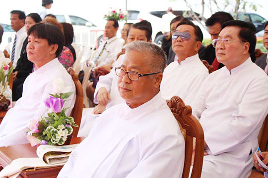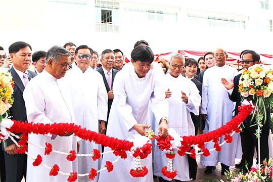 คุณพ่อบุญสืบ กล้วยไม้ ณ อยุธยา ดำเนินพิธีการเสกอาคารและพรมน้ำเสก