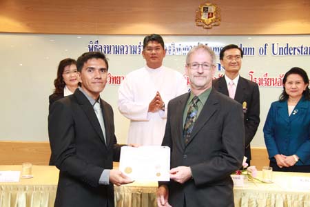 โดยมี ภราดา ดร.ชำนาญ เหล่ารักผล ลงนามร่วมกับ ผศ.บุญมา ป้านประดิษฐ์