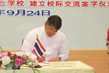 การพัฒนางานด้านภาษาจีน (MOU) โดยภราดา ดร.วีรยุทธ บุญพราหมณ์ ผู้อำนวยการโรงเรียนอัสสัมชัญธนบุรี