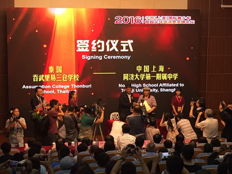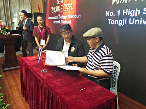 พิธีลงนามความร่วมมือระหว่างโรงเรียนอัสสัมชัญธนบุรี กับโรงเรียนสาธิต มัธยมถงจี้ ณ เมืองเซี้ยงไฮ้