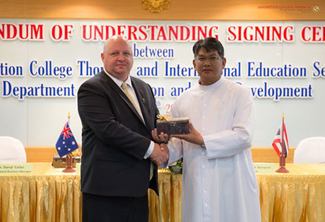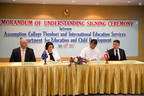 On July 14th, 2017, Assumption College Thonburi invited several guests from Australia to sign a memorandum of understanding. The delegation from Australia included guests from the Australian embassy, International Education Services, the Department for Education and Child Development of South Australia, and AusConnect. The event opened with a performance by ACT students demonstrating Thai culture through the traditional Lotus Dance and a welcoming speech by Brother Director, Dr.Verayuth Boonpram. Throughout the ceremony our distinguished guests gave some wonderful speeches and overviews detailing all of the advantages of our developing partnership. Through a morning of warm welcomes, we concluded by signing the memorandum that set our partnership into motion. We at ACT look forward to many years of successful friendship between our organizations to the betterment of our students.